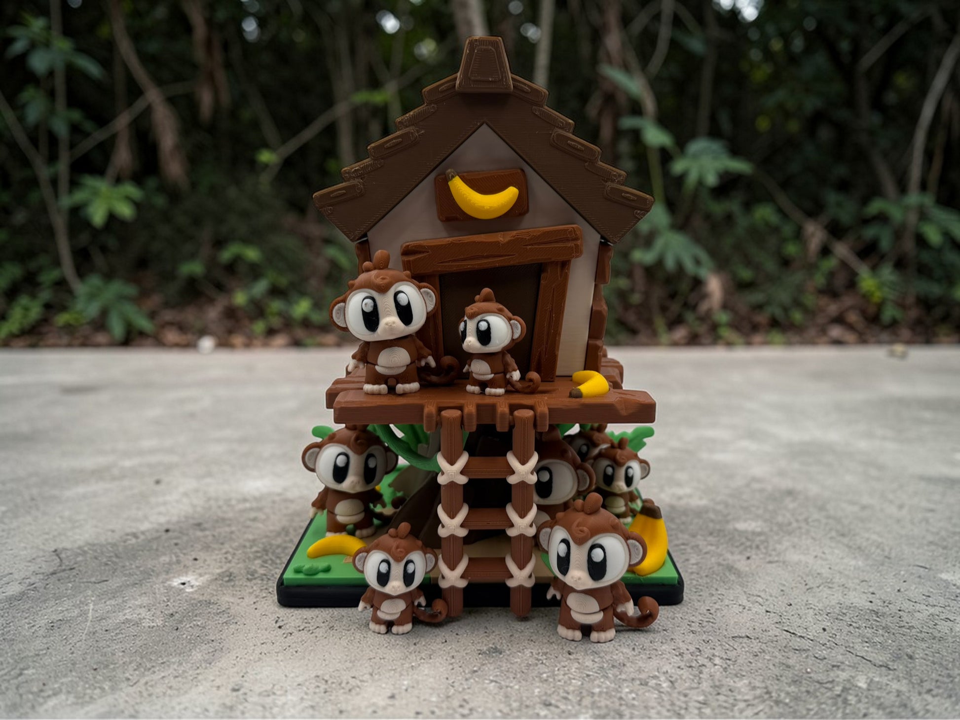 Bring a little jungle adventure to playtime with this adorable Treehouse Monkey Playset. This fun and detailed 3D printed set features a charming monkey treehouse and a group of playful monkeys ready to climb, explore, and cause a little mischief.