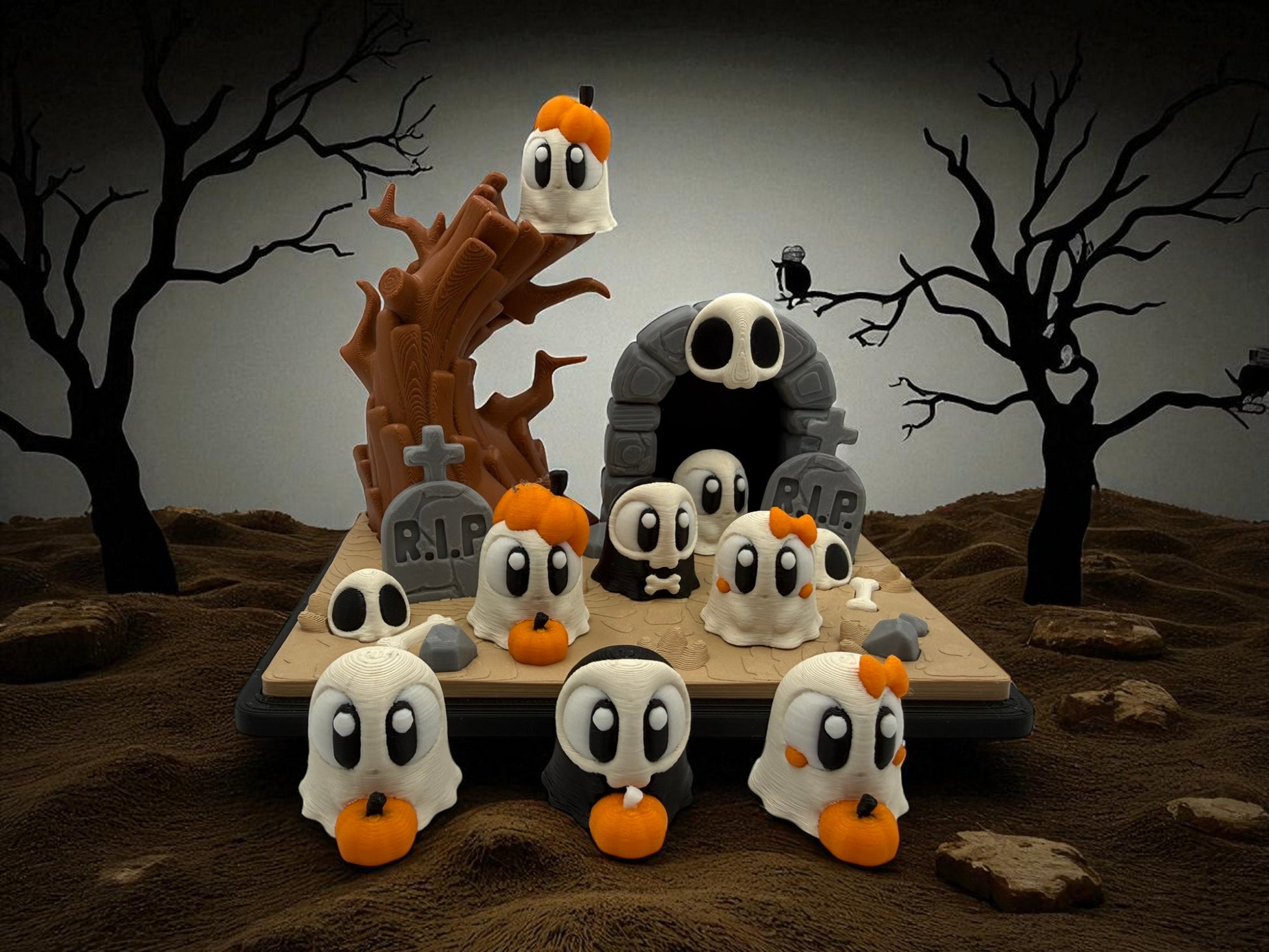 Who said graveyards can’t be adorable? This handcrafted 3D-printed diorama brings spooky and cute together in the most charming way!
