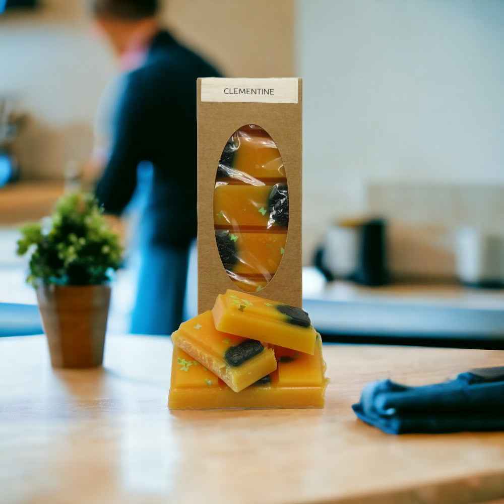 Let the Clementine Snap Bar Wax Melt infuse your space with the essence of a sun-soaked citrus grove. Illuminate your surroundings with the bright and uplifting aroma, making every moment a celebration of summer. Whether you're relaxing indoors or entertaining guests, this fragrance brings a burst of freshness and joy to your summer retreat.